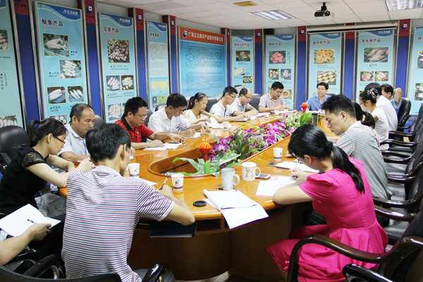 7月12日,正五海產公司在大會議室召開2016年上半年部門主管會議。各部門主管以上人員參加會議,會議由海產公司總經理崔小祥主持,正五集團董事長黃禮雄、財務總監王日善出席會議。