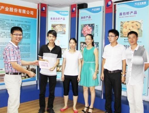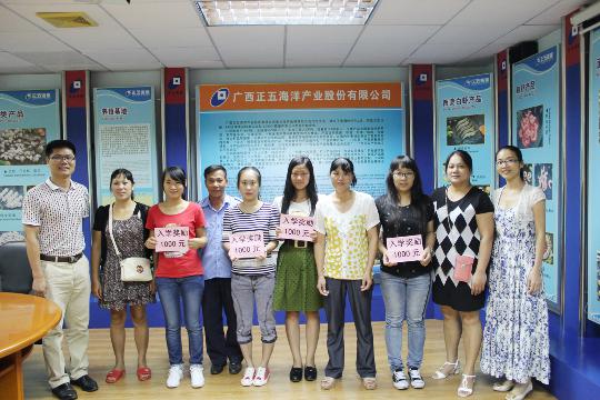 2014年8月23日正五海產(chǎn)公司召開(kāi)獎(jiǎng)勵(lì)座談會(huì),對(duì)在2014年高考中取得優(yōu)異成績(jī)4名員工子女按照《職工子女考上大學(xué)本科入學(xué)獎(jiǎng)勵(lì)辦法》進(jìn)行了獎(jiǎng)勵(lì)。