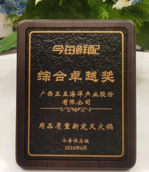 廣西正五海洋產(chǎn)業(yè)股份有限公司憑借穩(wěn)定卓越的品質(zhì)和高效的供應(yīng)能力,多年來(lái)持續(xù)成為巴奴公司核心供應(yīng)商。4月21日,在巴奴毛肚火鍋2026年度合作商感恩座談會(huì)上,正五海產(chǎn)公司榮獲巴奴公司2025年度綜合卓越獎(jiǎng)。